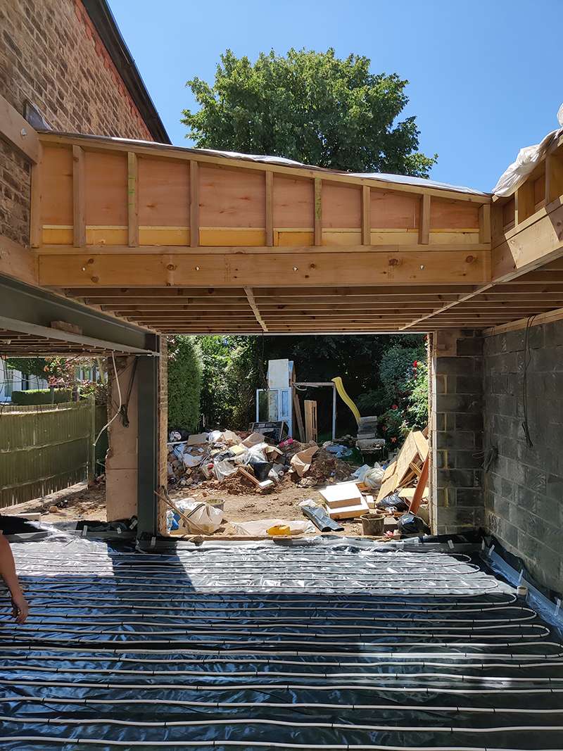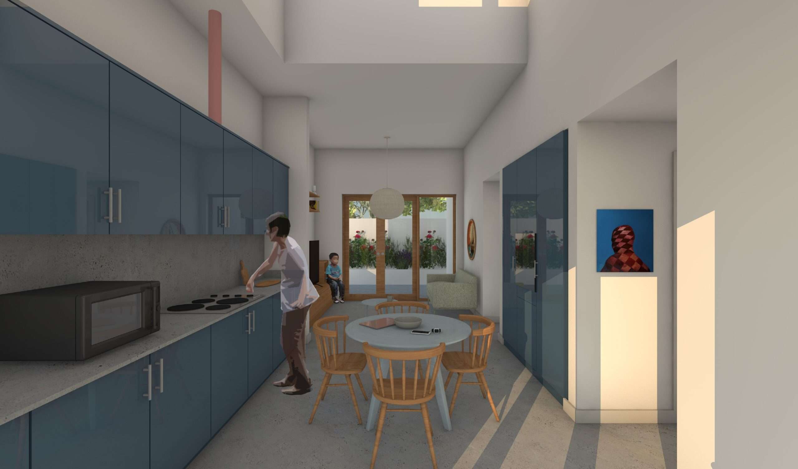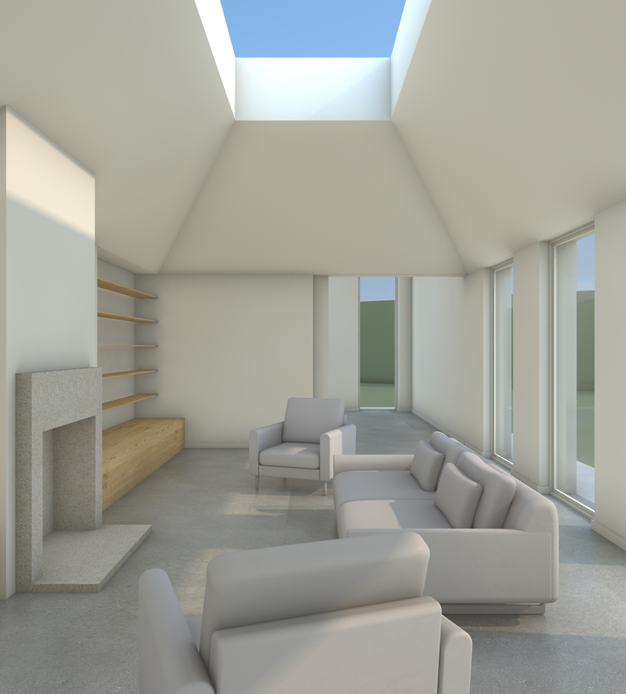 The client wished to infill the existing void formed by the shape of the existing property in the rear. The ground floor volume is offset to distinguish the new form against the host building & to maintain the character of the conservation area neighbourhood it sits within. Some features include a large quarter circle roof-light & arched doorway.