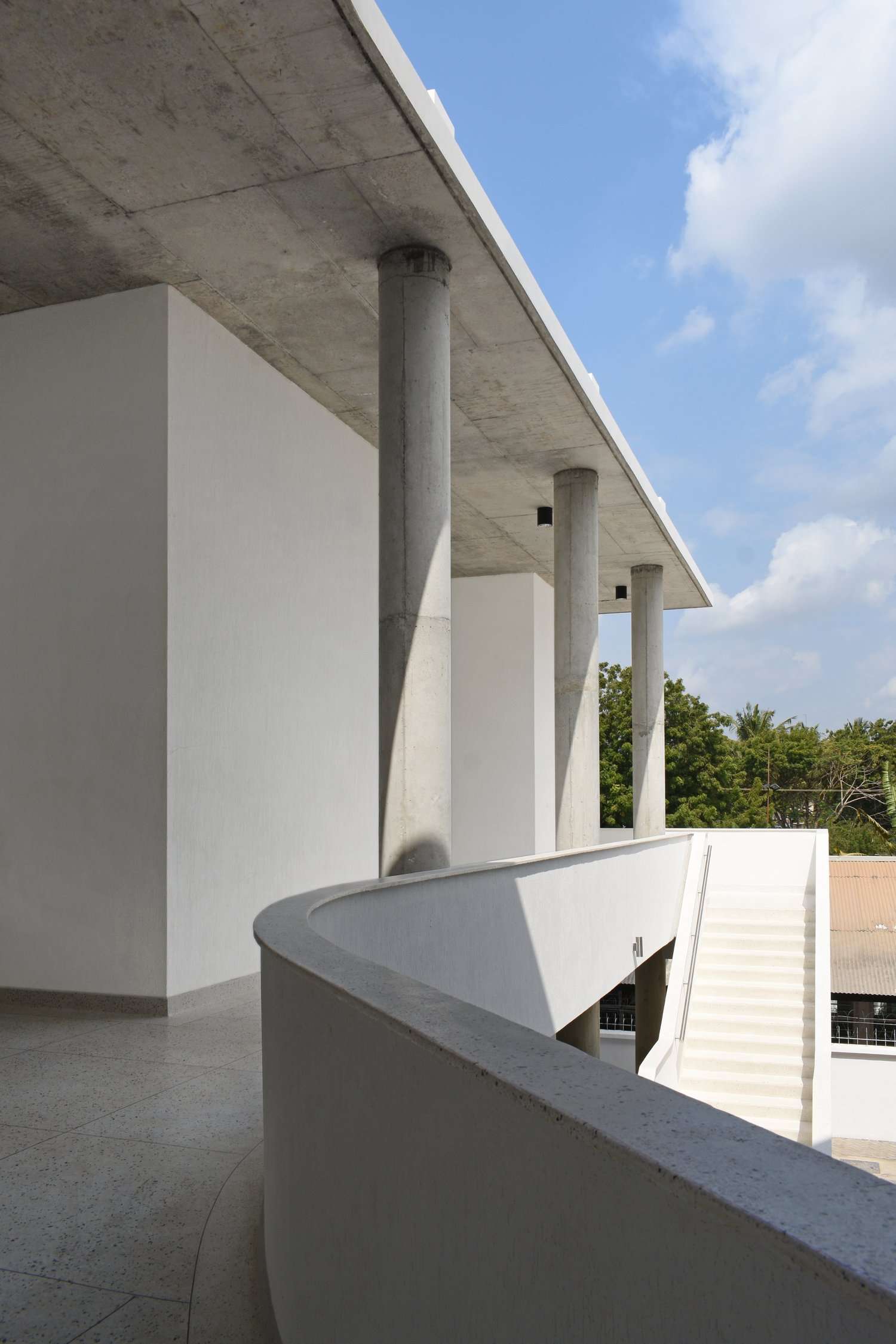 The brief developed into a 2-storey 3-bedroom 275 sqm family home whose terrace provides views towards a nearby mangrove forest & the Indian Ocean. The concept was developed as a modular fair-faced concrete frame & slabs with infill walls articulated by large openings, natural finishes such as locally sourced coral stone & hardwood.