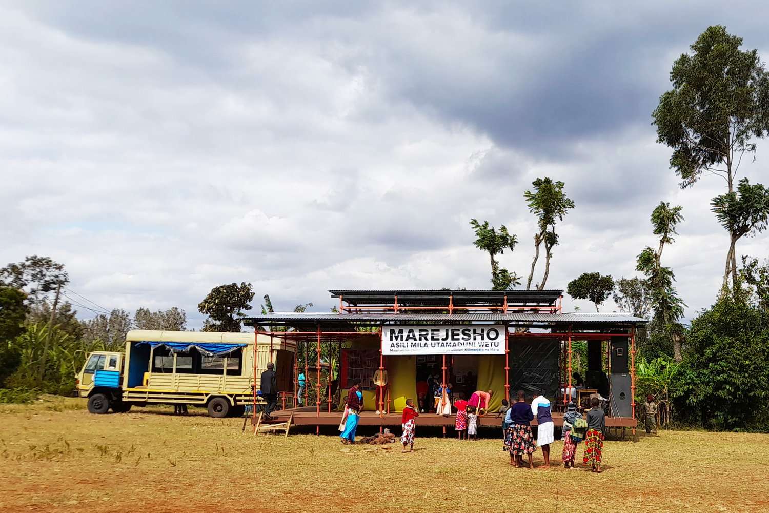 Marejesho was a mobile research exhibition that travelled throughout the Kilimanjaro & Meru regions to raise awareness, promote dialogue & exchange information about the Tanzanian cultural heritage currently held in German museums. The exhibition was constructed from materials that could be re-purposed after decommissioning.