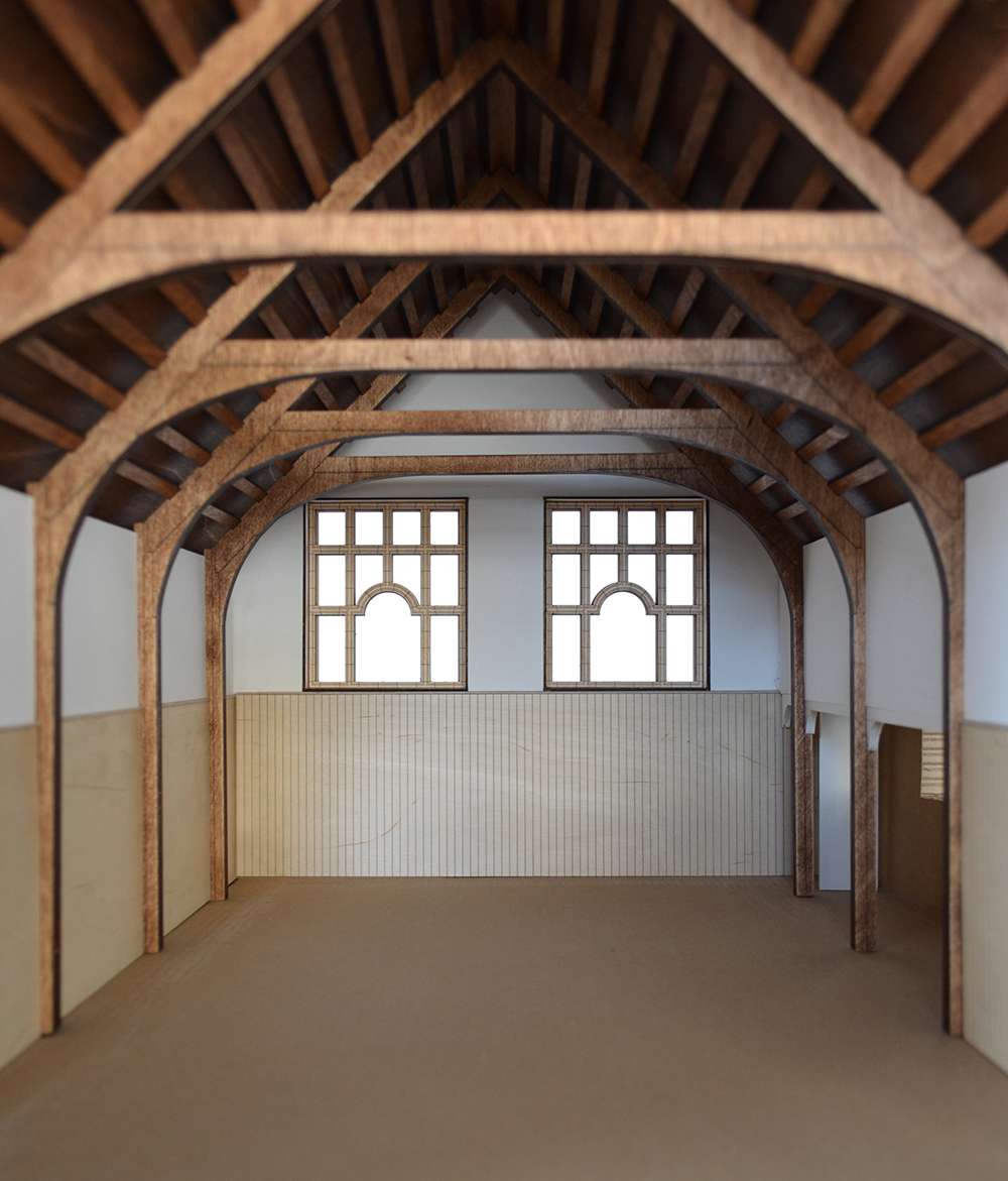 A Grade II listed neglected temperance mission hall, previously a plastics factory, is being transformed into a family home & studio for multi-disciplinary designers. The model serves as a testing device for new volumes that will complement the original structure while showcasing its dramatic spaces.