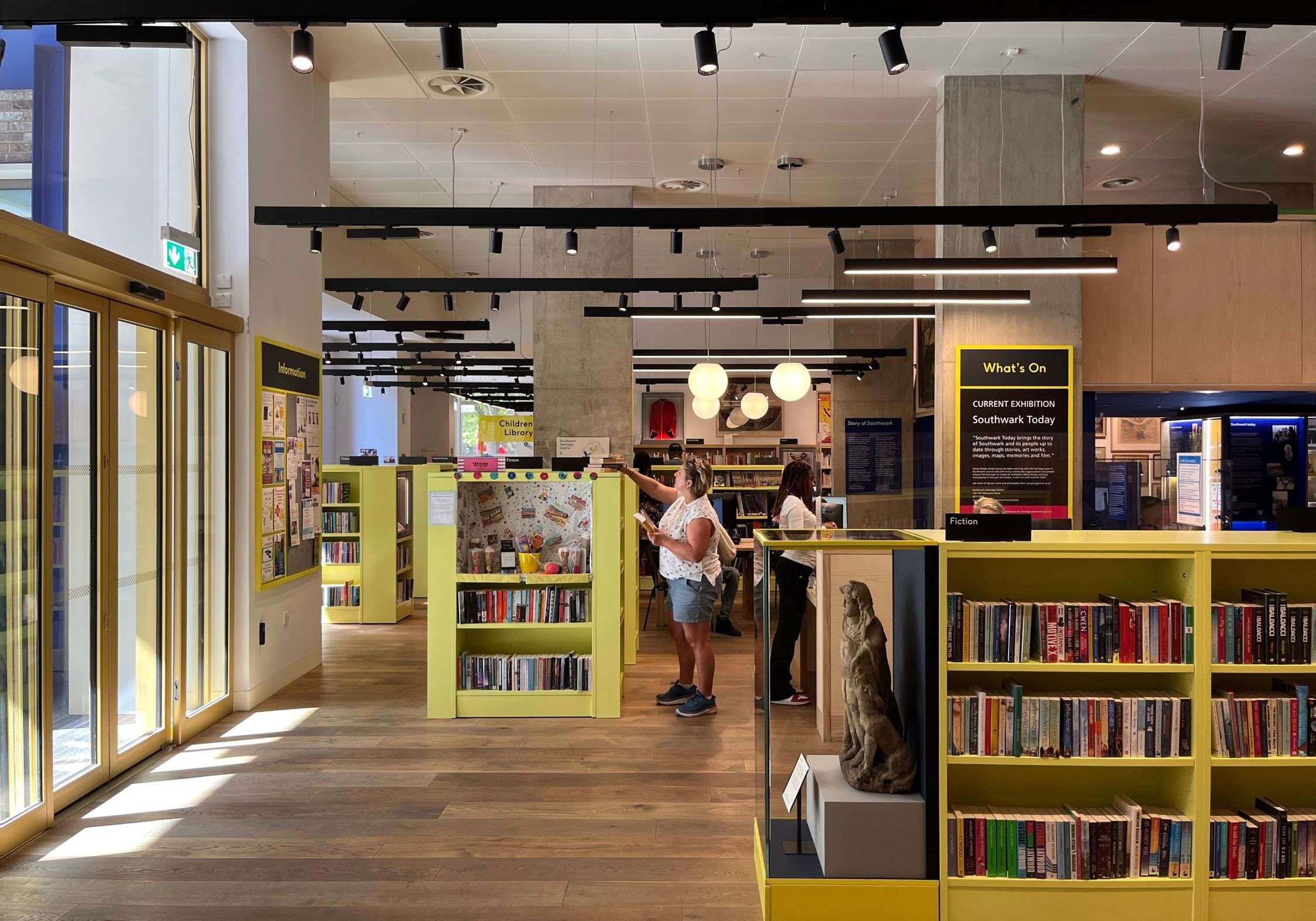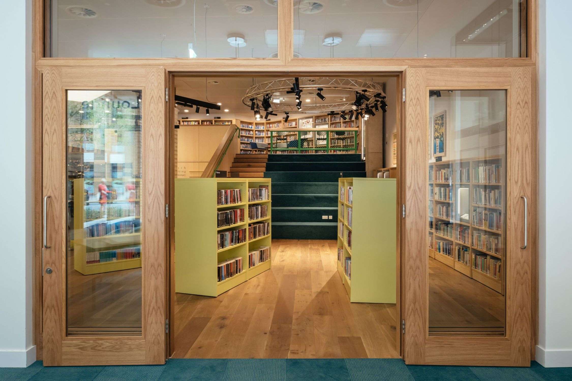 AOC won an invited competition to design a hybrid library & heritage centre which has been developed as part of Orchards Garden, a large-scale development located in south London. The new library & heritage centre features a community lounge, children’s library, a “Faraday” room, & ample study space, as well as an event space for community activities.