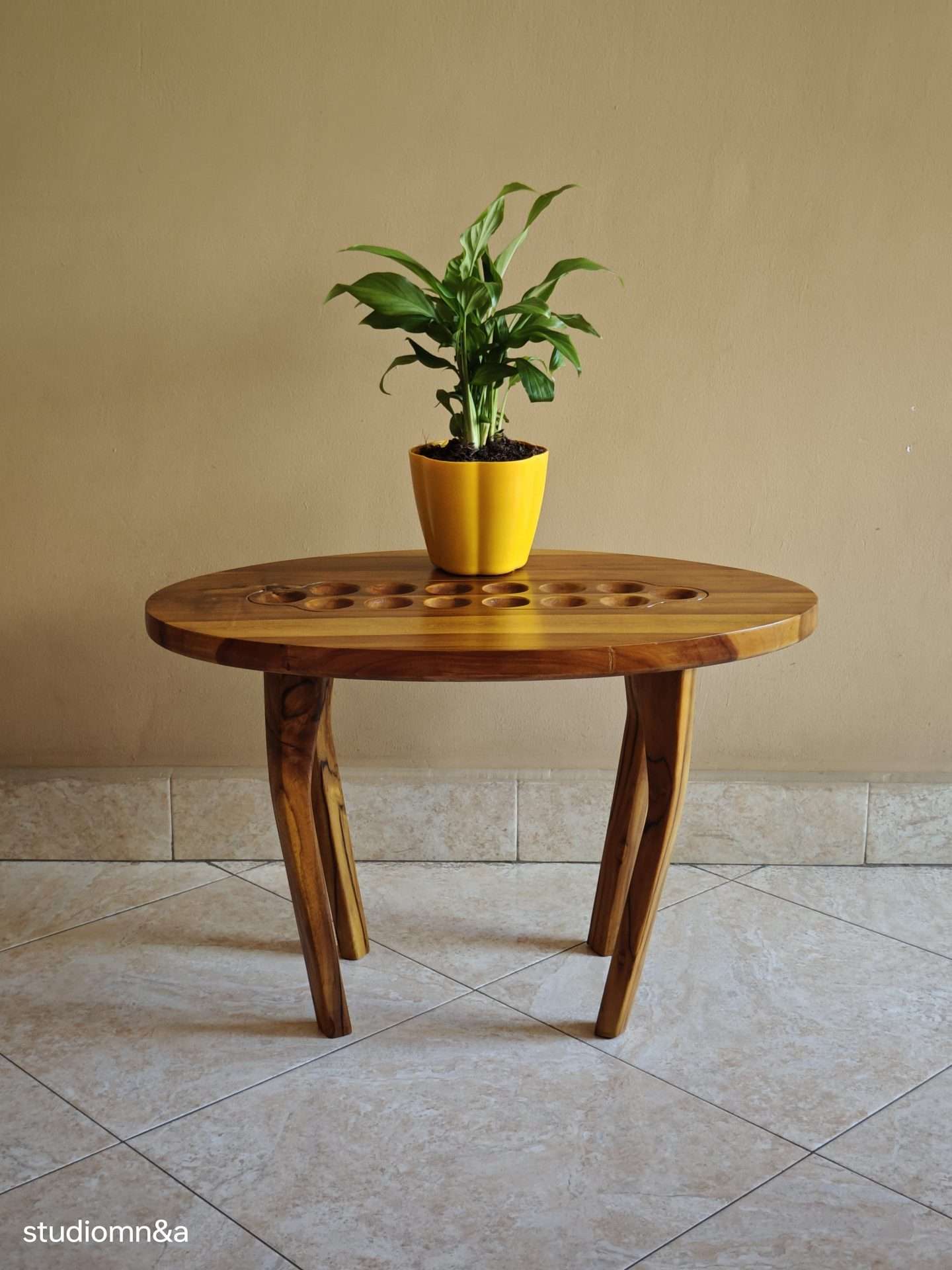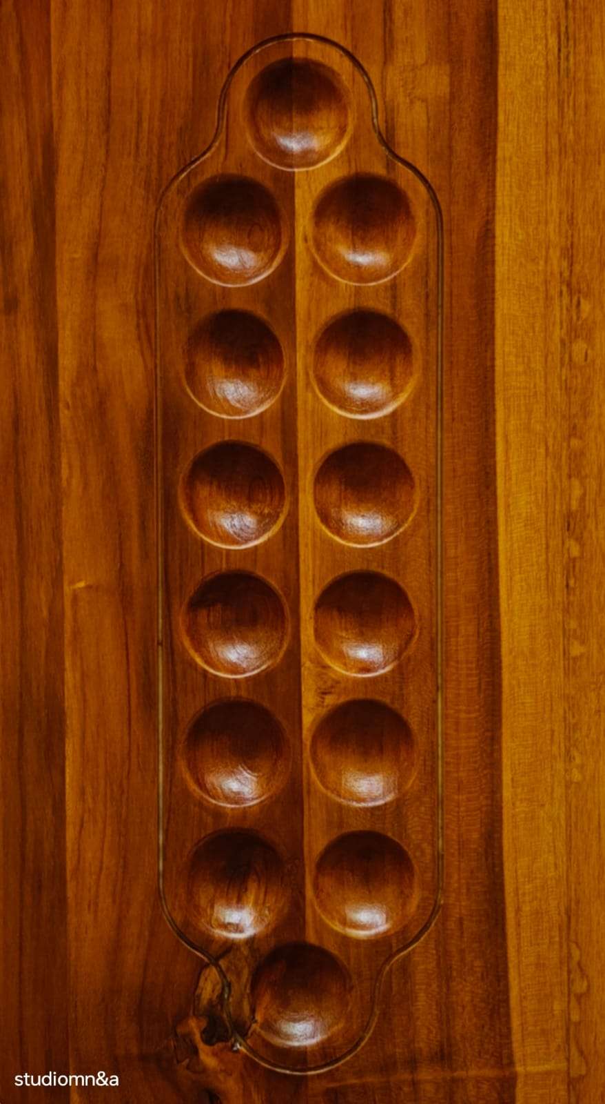 Directly inspired by the Bao games played on the coast of Tanzania, especially visible in Zanzibar, this Mancala coffee table pays homage to centuries of getting together, competing and spectating.