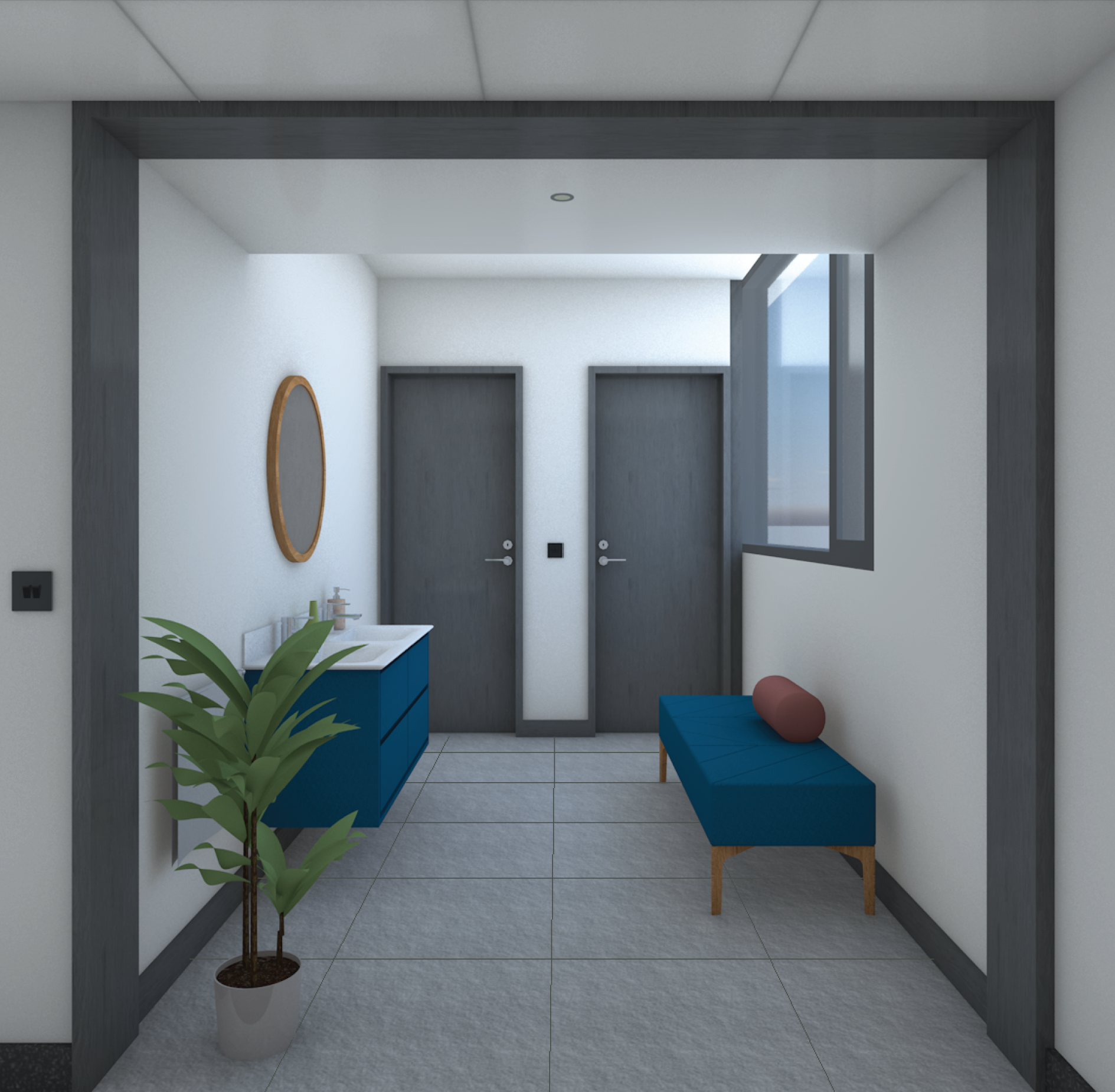 A precise and careful retrofit task in a sensitive environment, the brief was to revitalise the facilities for staff which includes a new disabled access WC and a refurbished kitchenette. The finishes proposal considers the compatibility against the existing beautiful black terrazzo floor finish.