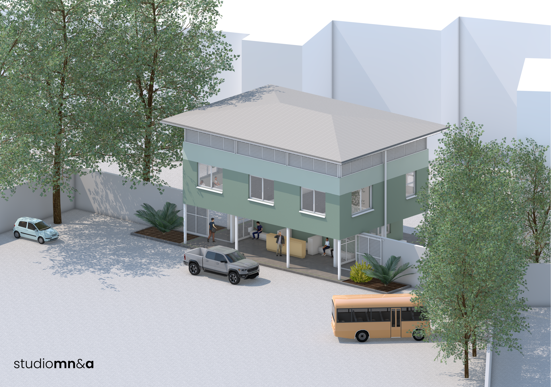 As part of a wider masterplan for Al Muntazir School, we designed a compact new admin building that doubles as the school’s main gatehouse. Prefabricated and demountable, it minimizes disruption during construction & allows for future flexibility. A shaded under croft on the ground floor connects key public functions, while the upper floors host open-plan admin offices & a naturally ventilated boardroom terrace. Designed with affordability & adaptability in mind, the building sets a clear tone for the campus transformation through thoughtful planning & modular construction.